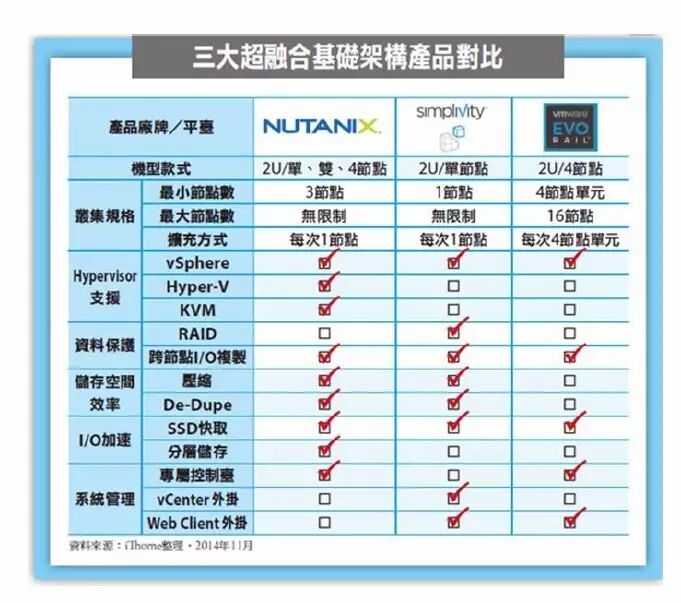 需要注意的是,以上產(chǎn)品對(duì)比資料已經(jīng)比較早,并不能夠反映產(chǎn)品最新的狀況。鑒于SimpliVity沒(méi)有進(jìn)入中國(guó)市場(chǎng),對(duì)其了解相對(duì)有限。