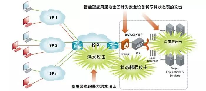 有數(shù)據(jù)顯示,如今狀態(tài)耗盡、應(yīng)用層DDoS攻擊逐漸遞增,已經(jīng)可以占據(jù)DDoS 總攻擊流量的50%。對(duì)于這種新型的攻擊,無(wú)論是運(yùn)營(yíng)商,還是傳統(tǒng)安全設(shè)備基本上是束手無(wú)策。原因在于運(yùn)營(yíng)商實(shí)施的檢測(cè)主要集中在網(wǎng)絡(luò)2層、3層;沒(méi)有辦法對(duì)于4~7層內(nèi)容實(shí)施檢測(cè),提供安全防護(hù);對(duì)于傳統(tǒng)安全設(shè)備來(lái)說(shuō),本身就是DDoS的攻擊對(duì)象。
